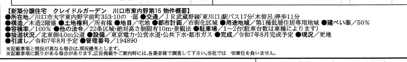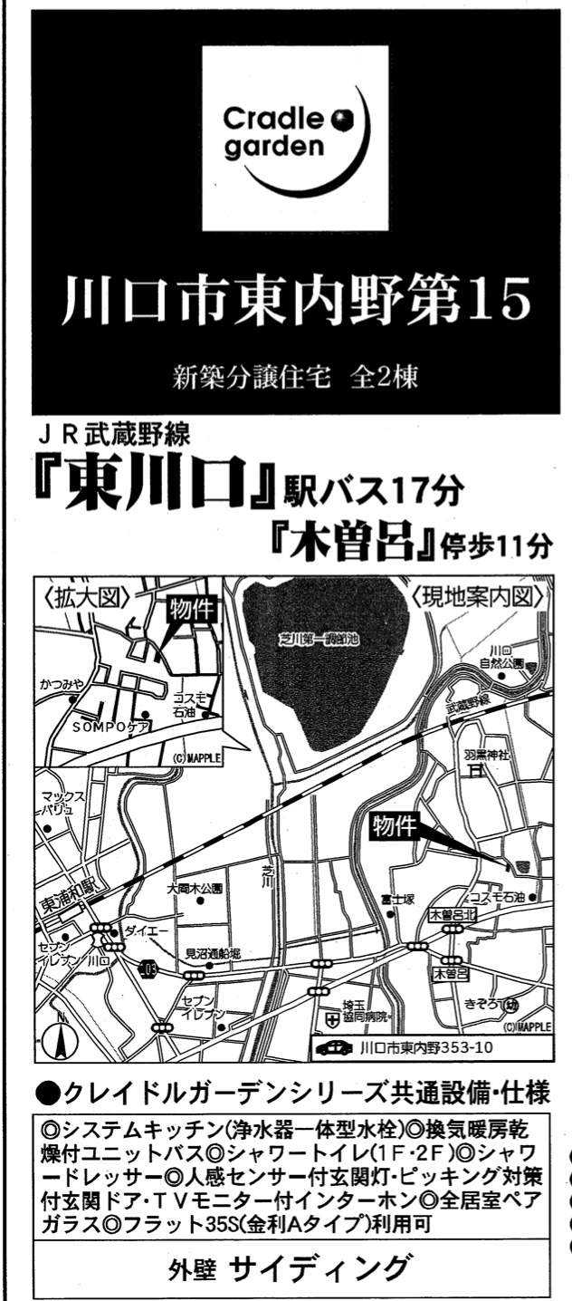 | 交通 | JR武蔵野線東川口駅 バス(木曽呂 乗17分 停歩11分) |