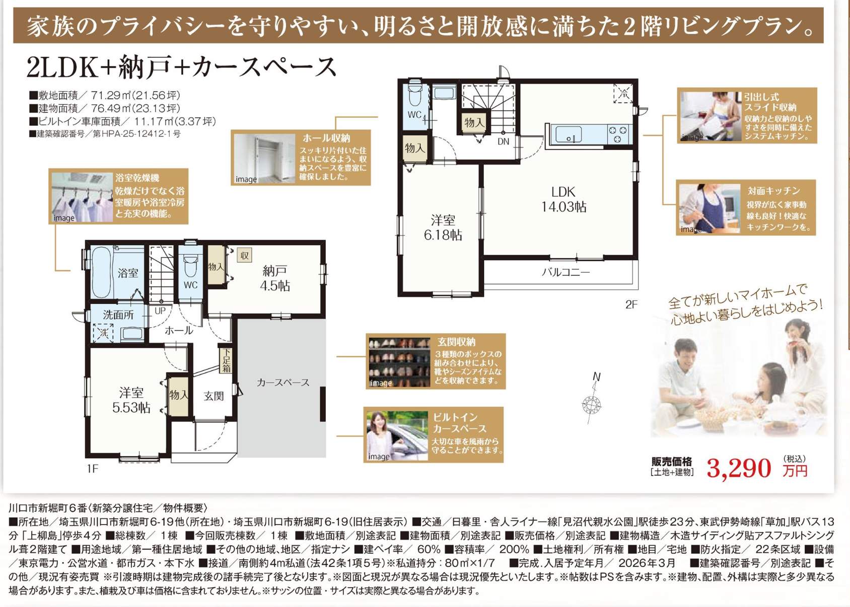 川口市新堀町 新築戸建 仲介手数料無料 3290万円 更にお祝金最大20万円プレゼント付 見沼代親水公園駅歩23分 新築戸建