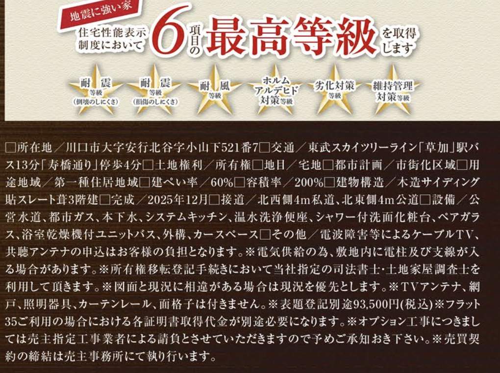 | 所在地 | 埼玉県川口市大字安行北谷521-7 新築戸建 仲介手数料無料 2980万円 更にお祝金最大20万円プレゼント付 草加駅歩分 |