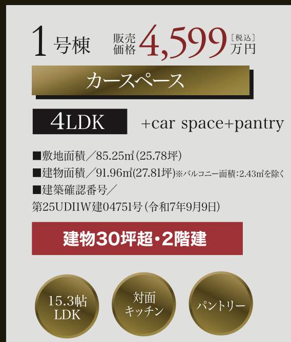 | 所在地 | 埼玉県さいたま市浦和区瀬ヶ崎1丁目19-25 新築戸建 仲介手数料無料 4599万円 更にお祝金最大20万円プレゼント付 北浦和駅歩20分 |