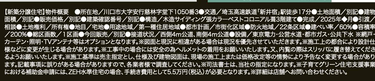 川口市大字安行慈林 新築戸建 仲介手数料無料 3550万円値下げ! 更にお祝金最大20万円プレゼント付 新井宿駅歩17分 新築戸建