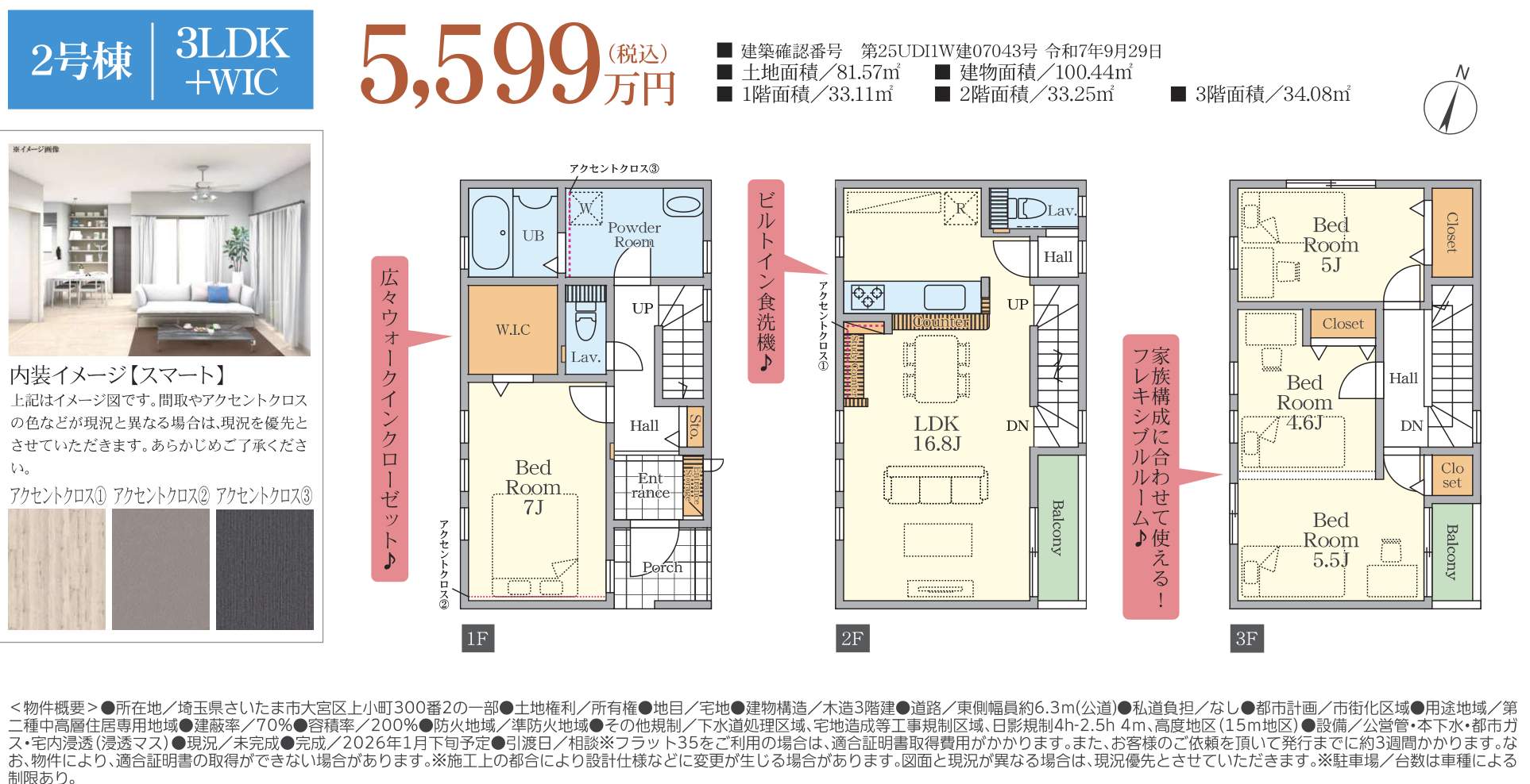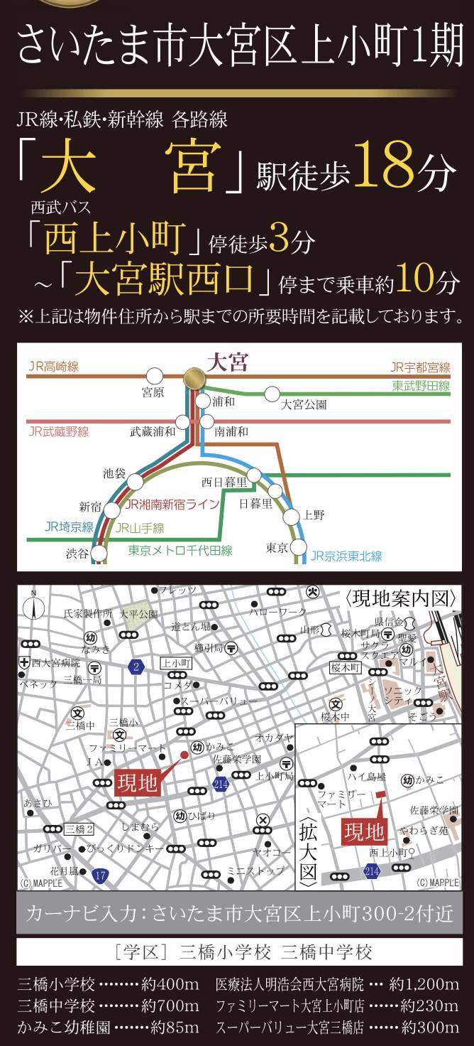 | 所在地 | 埼玉県さいたま市大宮区上小町300-2 新築戸建 仲介手数料無料 5599万円 更にお祝金最大20万円プレゼント付 大宮駅歩18分 |