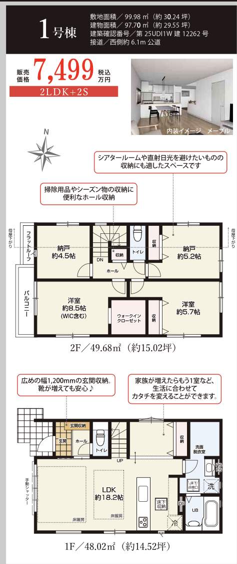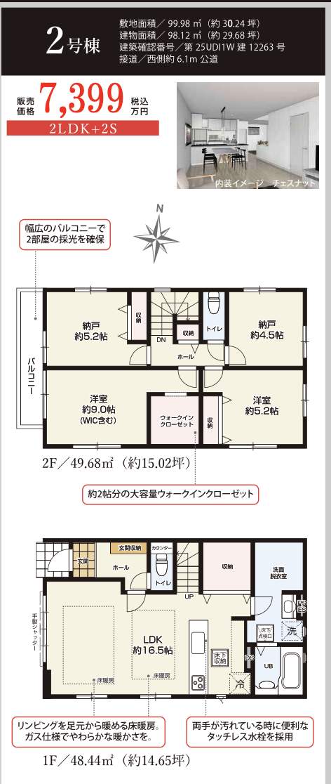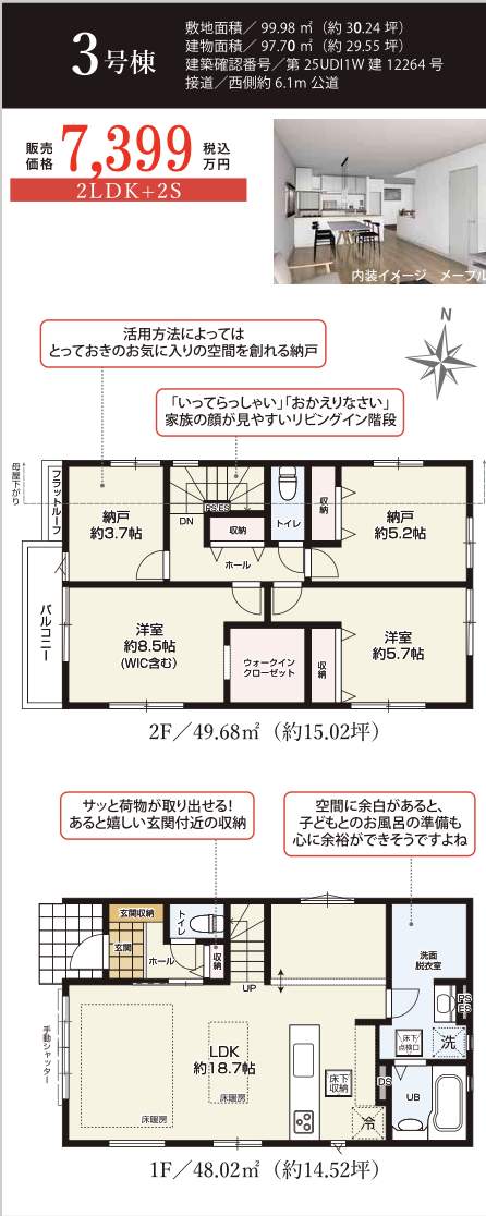 | 所在地 | 埼玉県さいたま市北区土呂町2丁目79-7 新築戸建 仲介手数料無料 7399万円 更にお祝金最大20万円プレゼント付 土呂駅歩7分 |