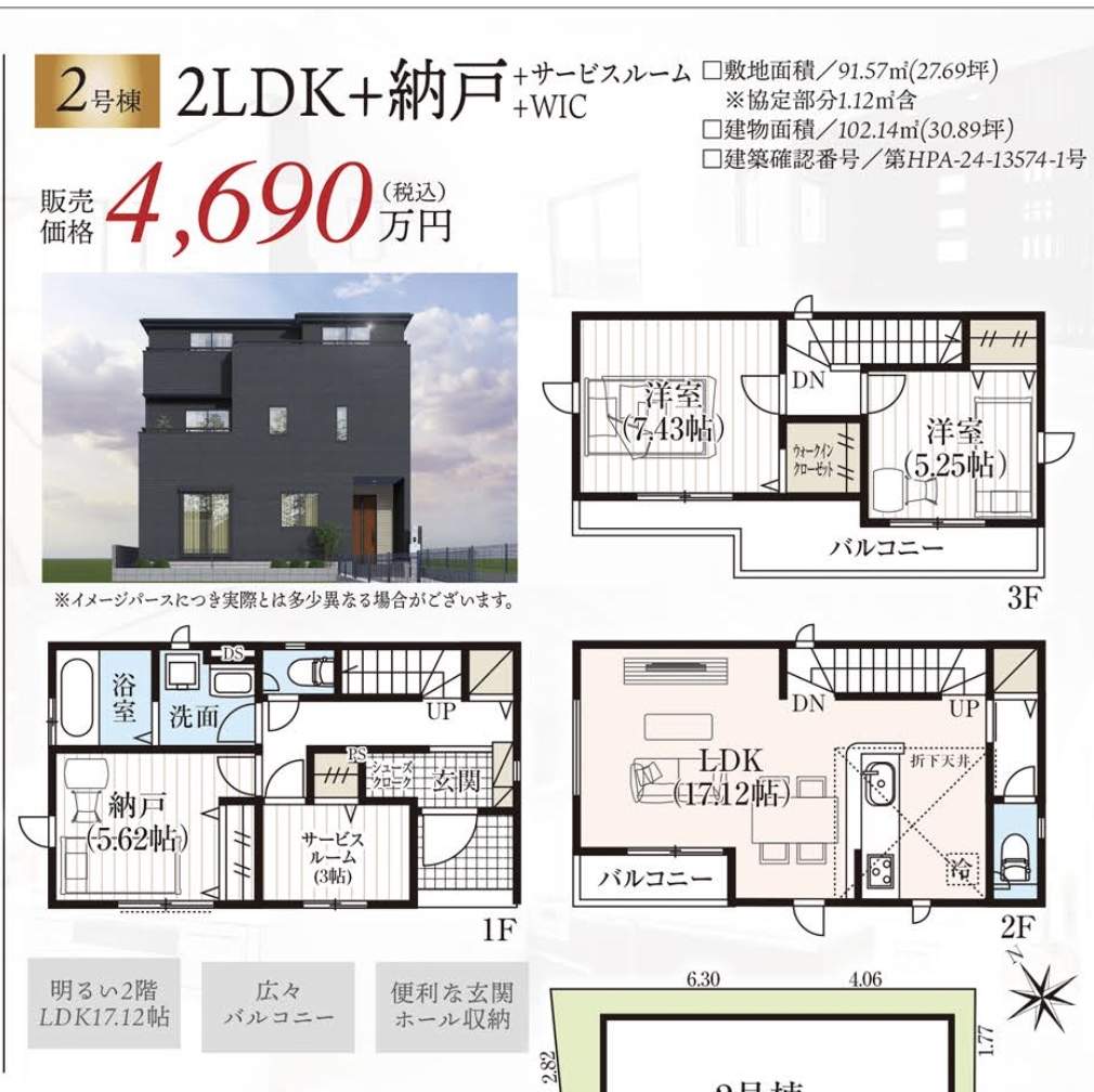 外観、タクトホーム 川口市芝西1丁目 新築戸建 仲介手数料無料 配置図、タクトホーム 川口市芝西1丁目 新築戸建 仲介手数料無料 1号棟 価格改定4599円(税込)2025/11/2共通間取り図、タクトホーム 川口市芝西1丁目 新築戸建 仲介手数料無料