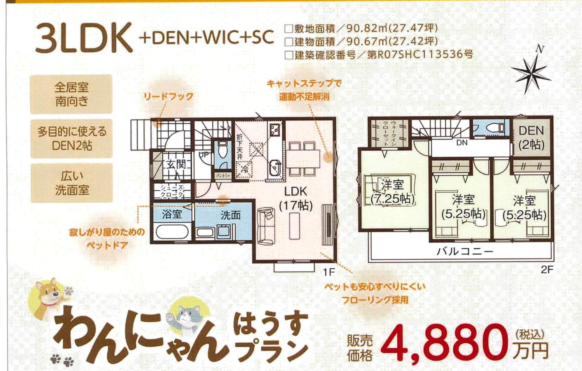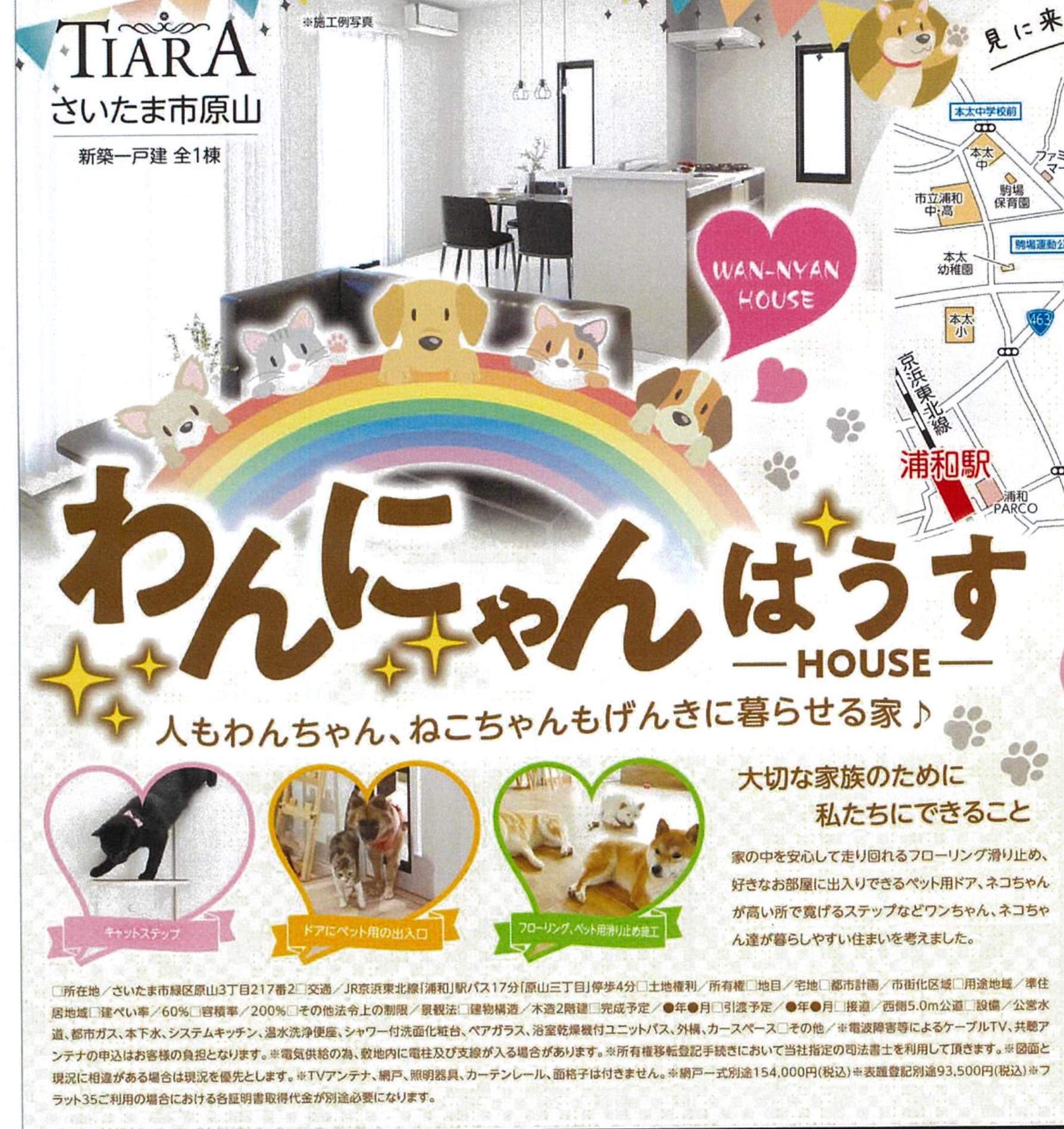 さいたま市緑区原山3丁目 新築戸建 仲介手数料無料 4880万円 更にお祝金最大20万円プレゼント付 浦和駅 バス( 乗17分 停歩4分) 新築戸建 わんにゃんハウス