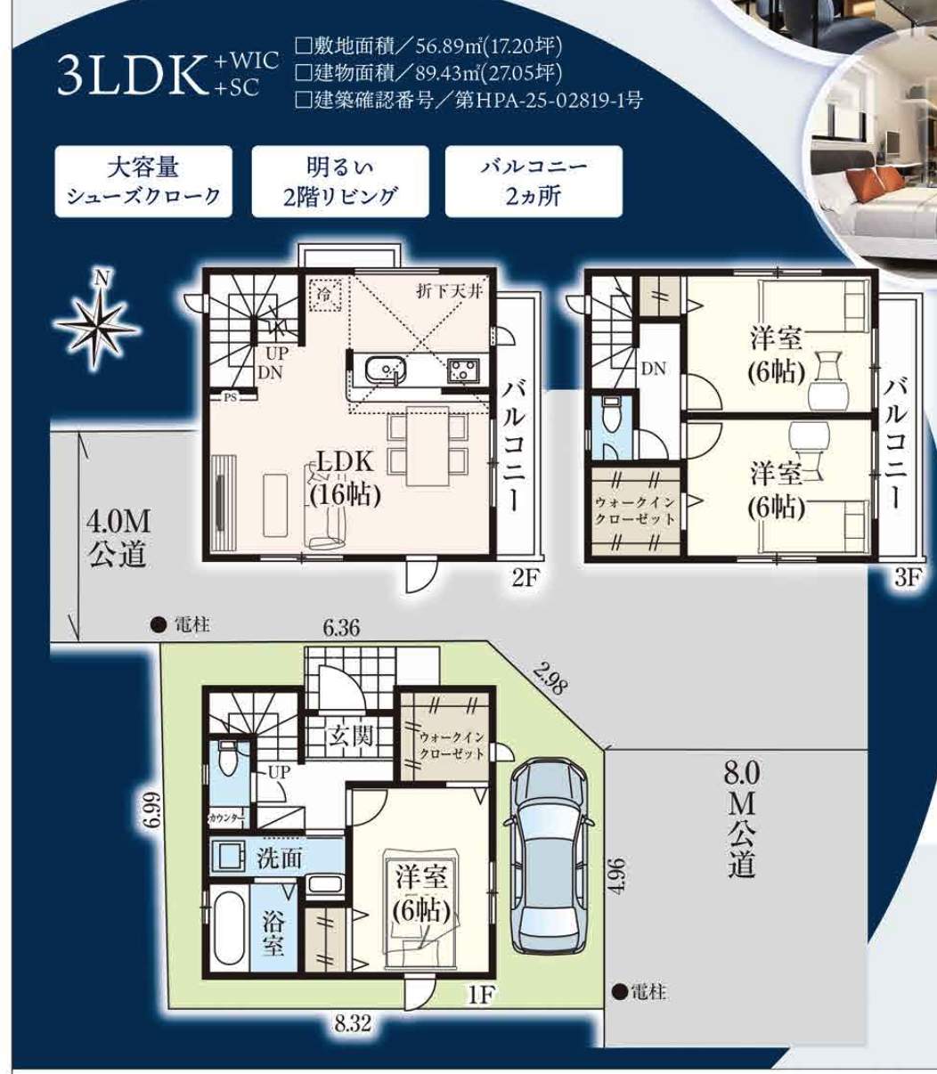 | 面積 | 89.43m² | 計測方式 | 壁芯 |