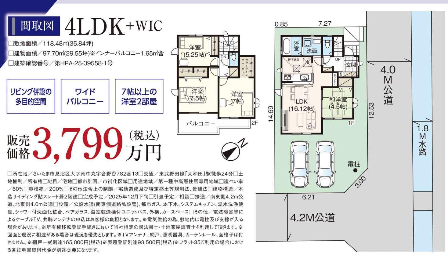 さいたま市見沼区大字南中丸 新築戸建 仲介手数料無料 3799万円 更にお祝金最大20万円プレゼント付 大和田駅歩24分 新築戸建