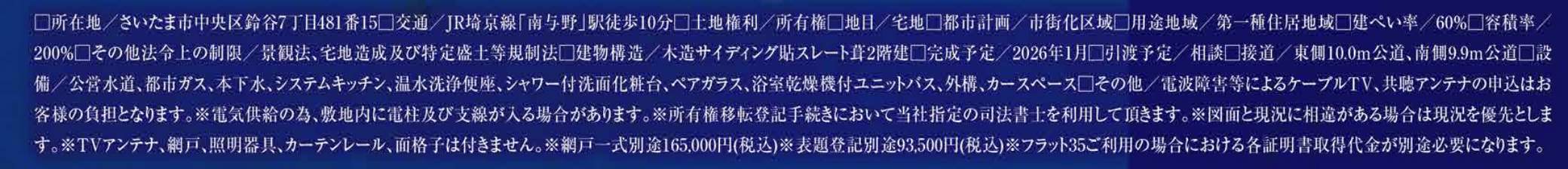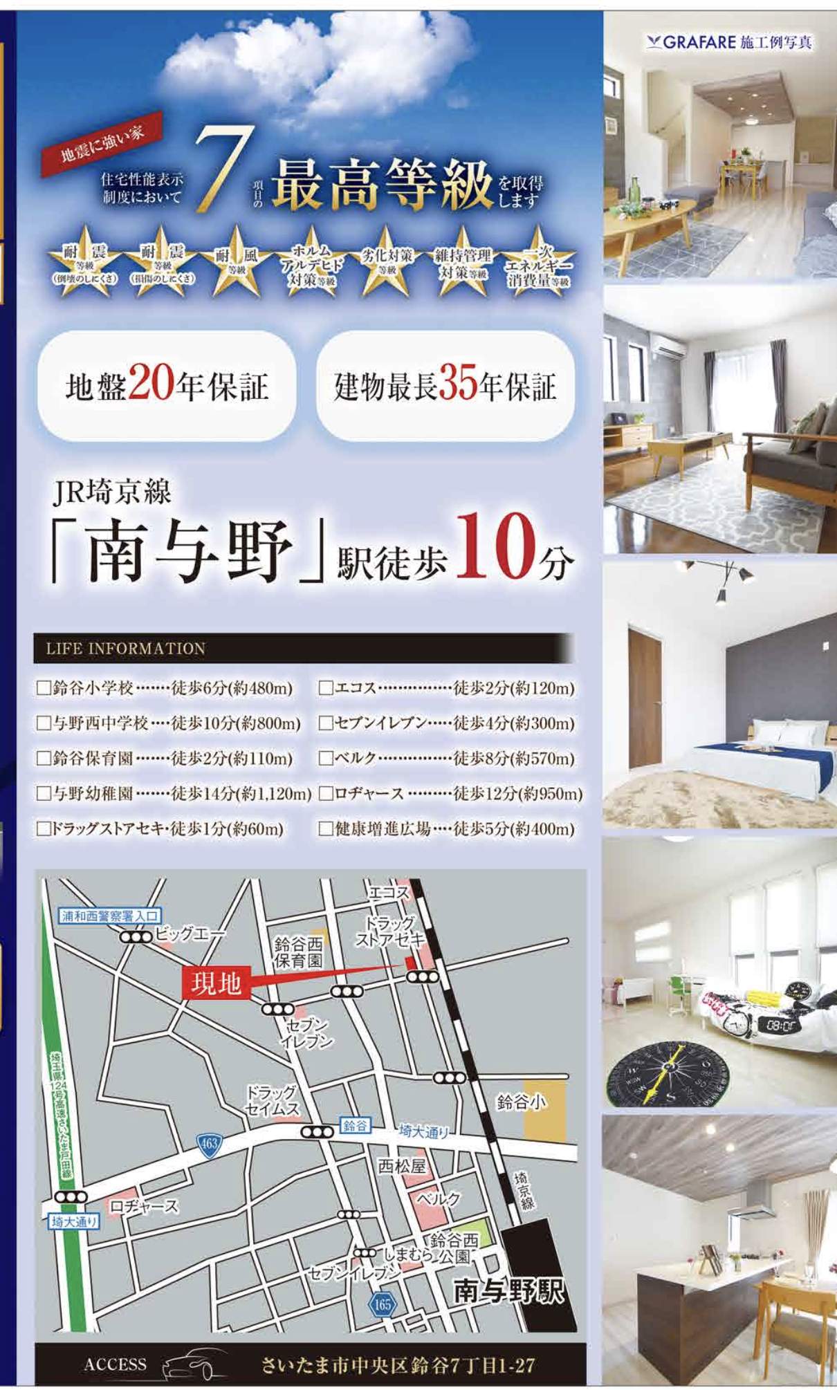| 所在地 | 埼玉県さいたま市中央区鈴谷7丁目1-27 新築戸建 仲介手数料無料 6880万円 更にお祝金最大20万円プレゼント付 南与野駅歩10分 |