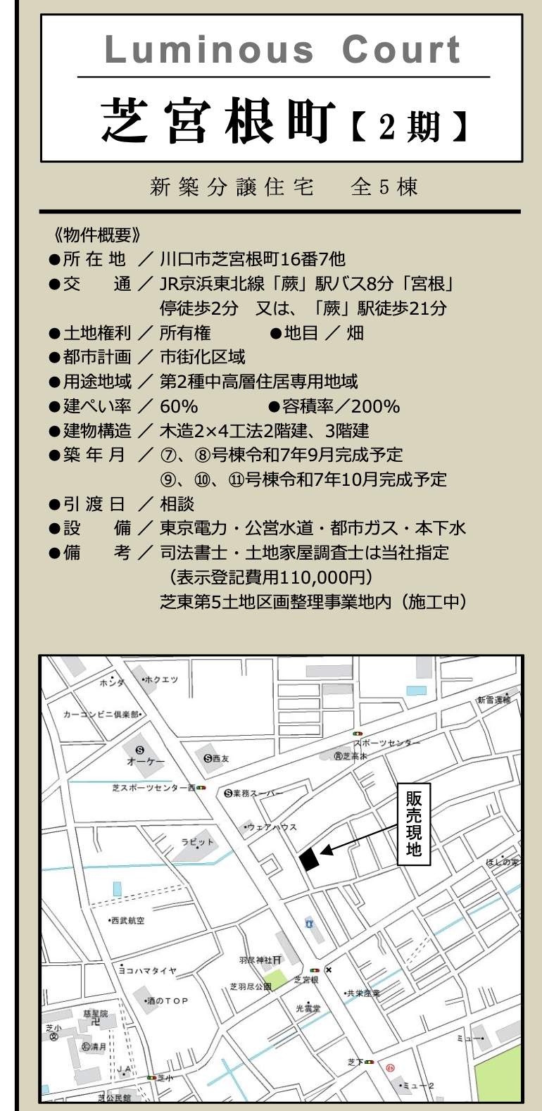 | 所在地 | 埼玉県川口市芝宮根町16-7 新築戸建 仲介手数料無料 4480万円 更にお祝金最大20万円プレゼント付 蕨駅歩分 |