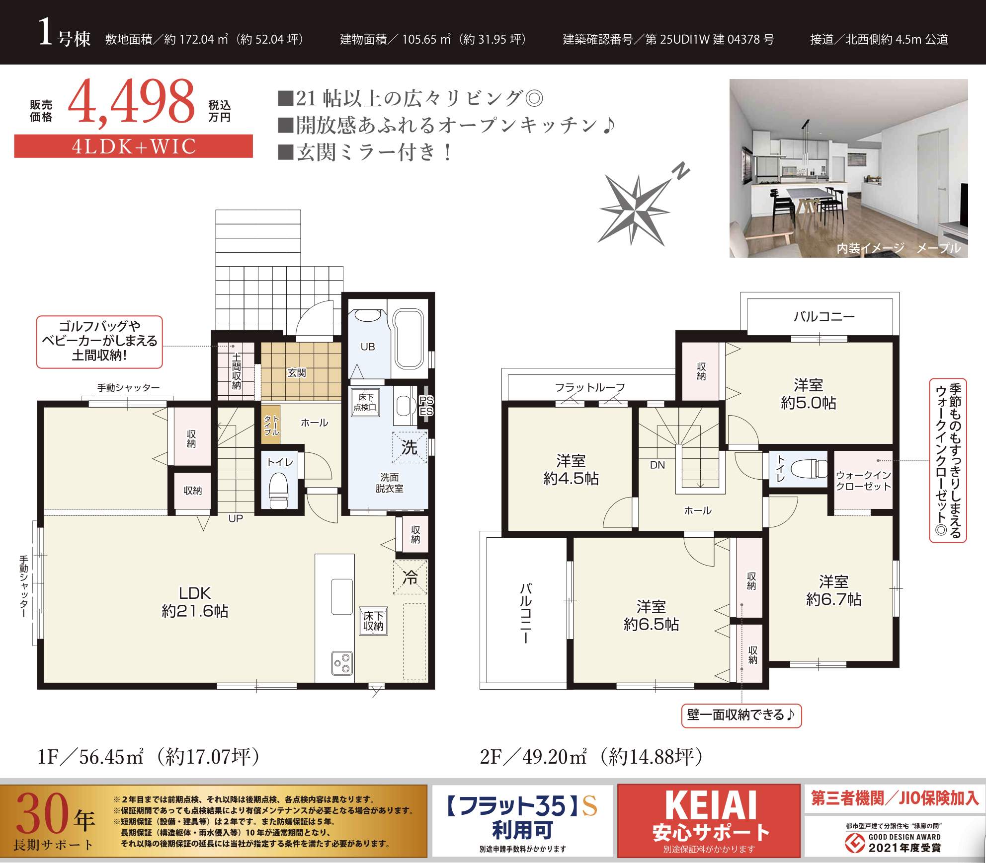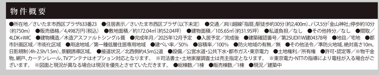 | 所在地 | 埼玉県さいたま市西区プラザ72-7 新築戸建 仲介手数料無料 4498万円 更にお祝金最大20万円プレゼント付 指扇駅歩30分 |
