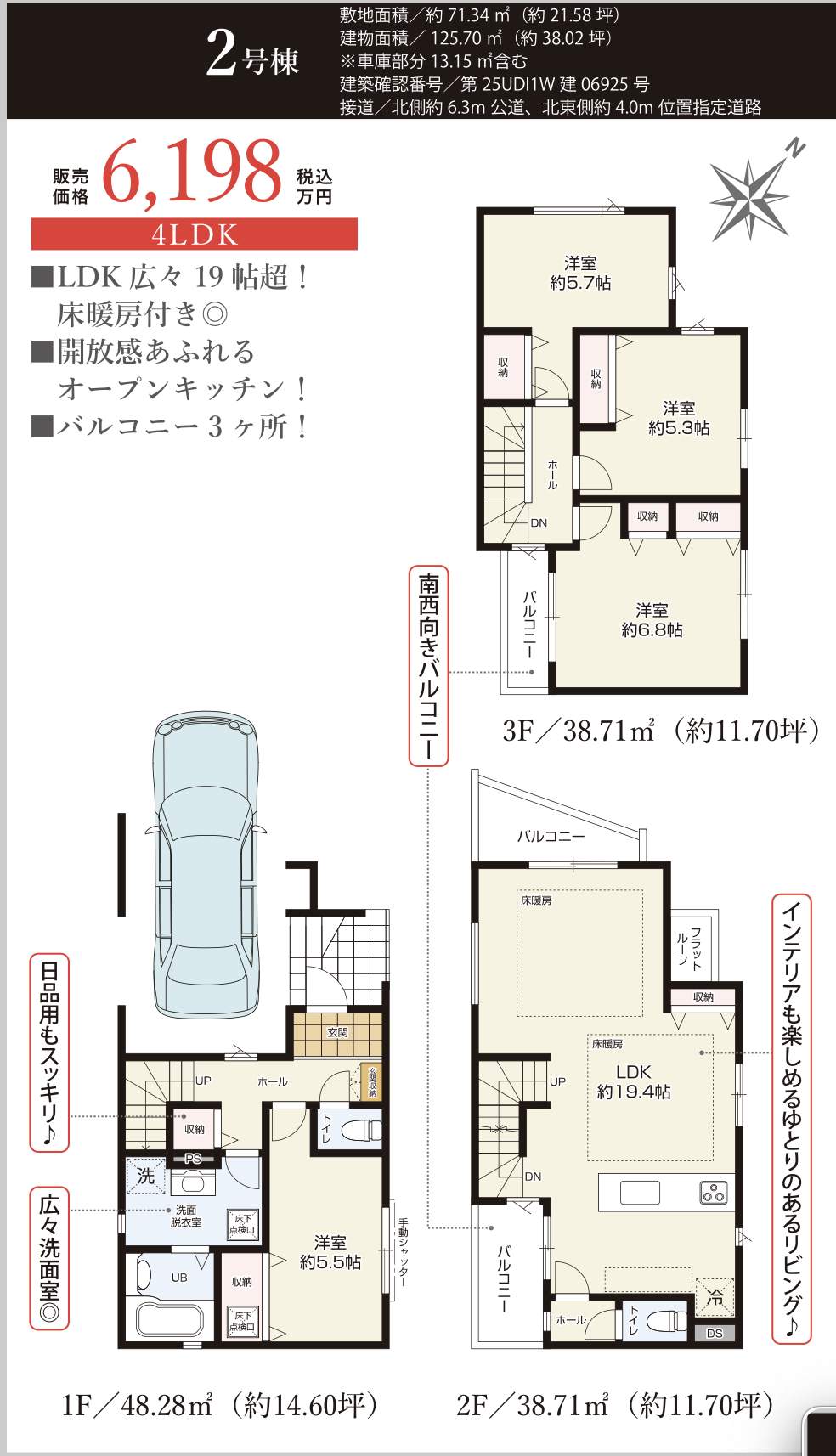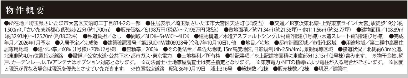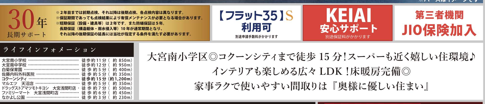 所在地 埼玉県さいたま市大宮区天沼町2丁目834-2 新築戸建 仲介手数料無料 6198万円 更にお祝金最大20万円プレゼント付 大宮駅歩19分