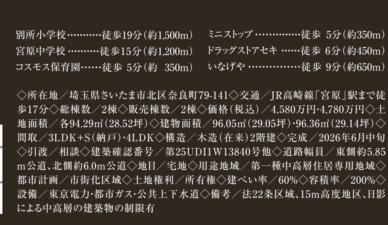 さいたま市北区奈良町 新築戸建 仲介手数料無料 4280万円 4480万円 更にお祝金最大20万円プレゼント付 宮原駅歩17分 新築戸建