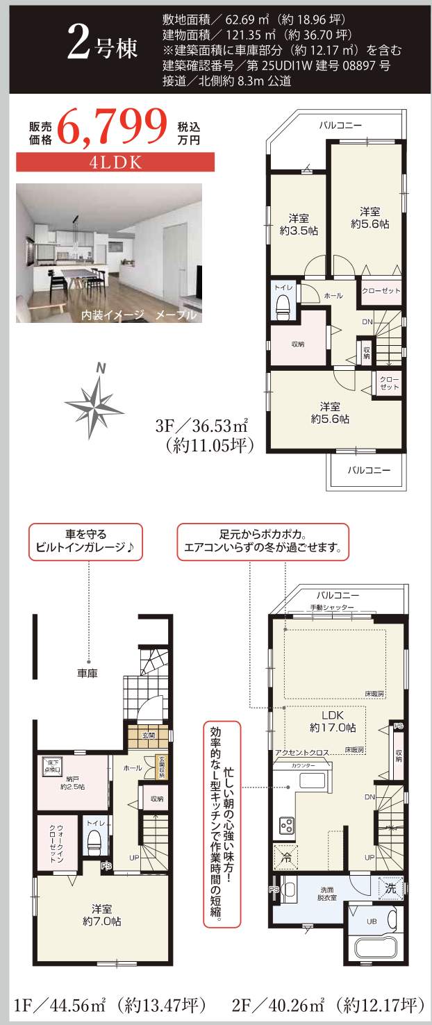 川口市中青木1丁目 新築戸建 仲介手数料無料 6799万円より3棟 更にお祝金最大20万円プレゼント付 川口駅歩13分 新築戸建