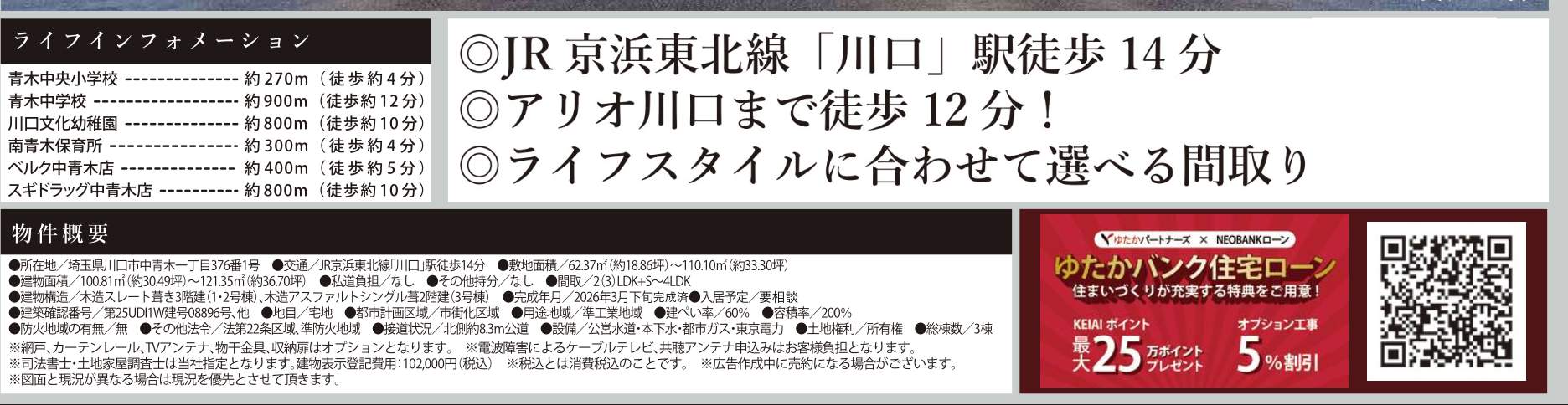 | 交通 | JR京浜東北・根岸線川口駅 徒歩13分 |