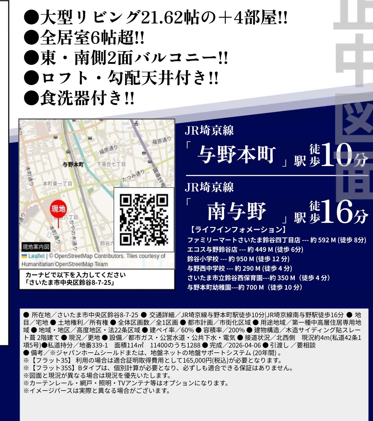所在地 埼玉県さいたま市中央区鈴谷8丁目7-25 新築戸建 仲介手数料無料 5780万円 更にお祝金最大20万円プレゼント付 与野本町駅歩10分