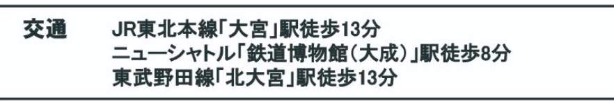 | 交通 | JR京浜東北・根岸線大宮駅 徒歩13分 |