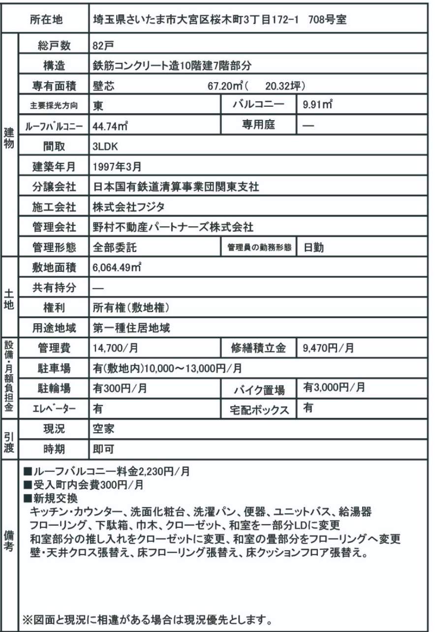 | 所在地 | 埼玉県さいたま市大宮区桜木町3丁目172-1 レールシテイ大宮2番館中古マンション 仲介手数料無料 更にお祝金最大20万円プレゼント付 レールシテイ大宮2番館 |