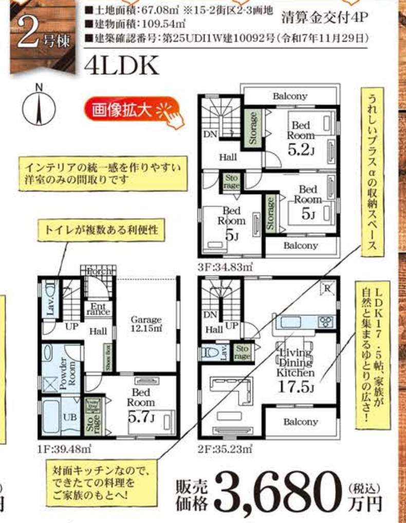 | 所在地 | 埼玉県川口市前川町4丁目683-3 新築戸建 仲介手数料無料 3680万円 更にお祝金最大20万円プレゼント付 蕨駅歩分 |