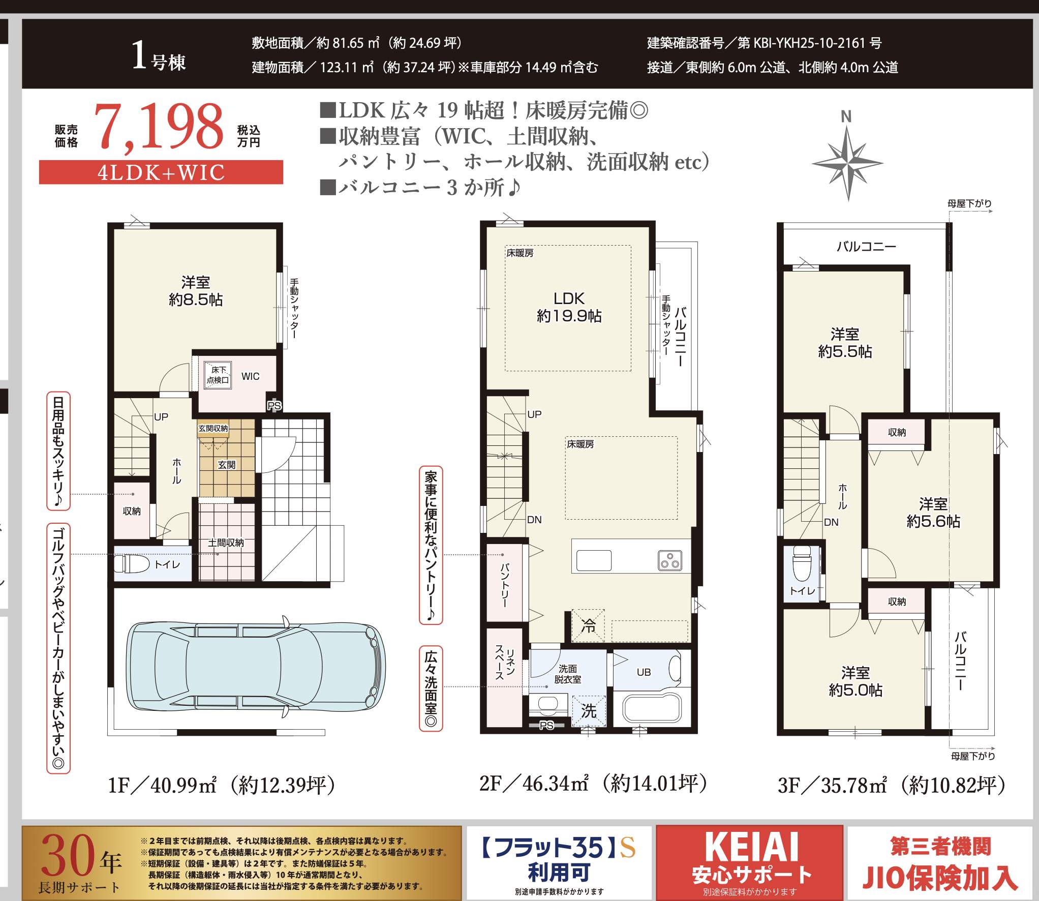さいたま市中央区下落合7丁目 新築戸建 仲介手数料無料 7198万円 更にお祝金最大20万円プレゼント付 与野本町駅歩5分 新築戸建