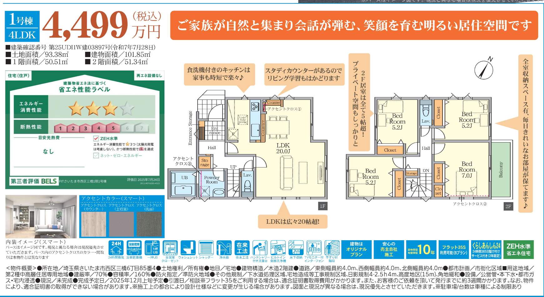 さいたま市西区三橋6丁目 新築戸建 仲介手数料無料 4399万円 更にお祝金最大20万円プレゼント付 西大宮駅歩15分 新築戸建