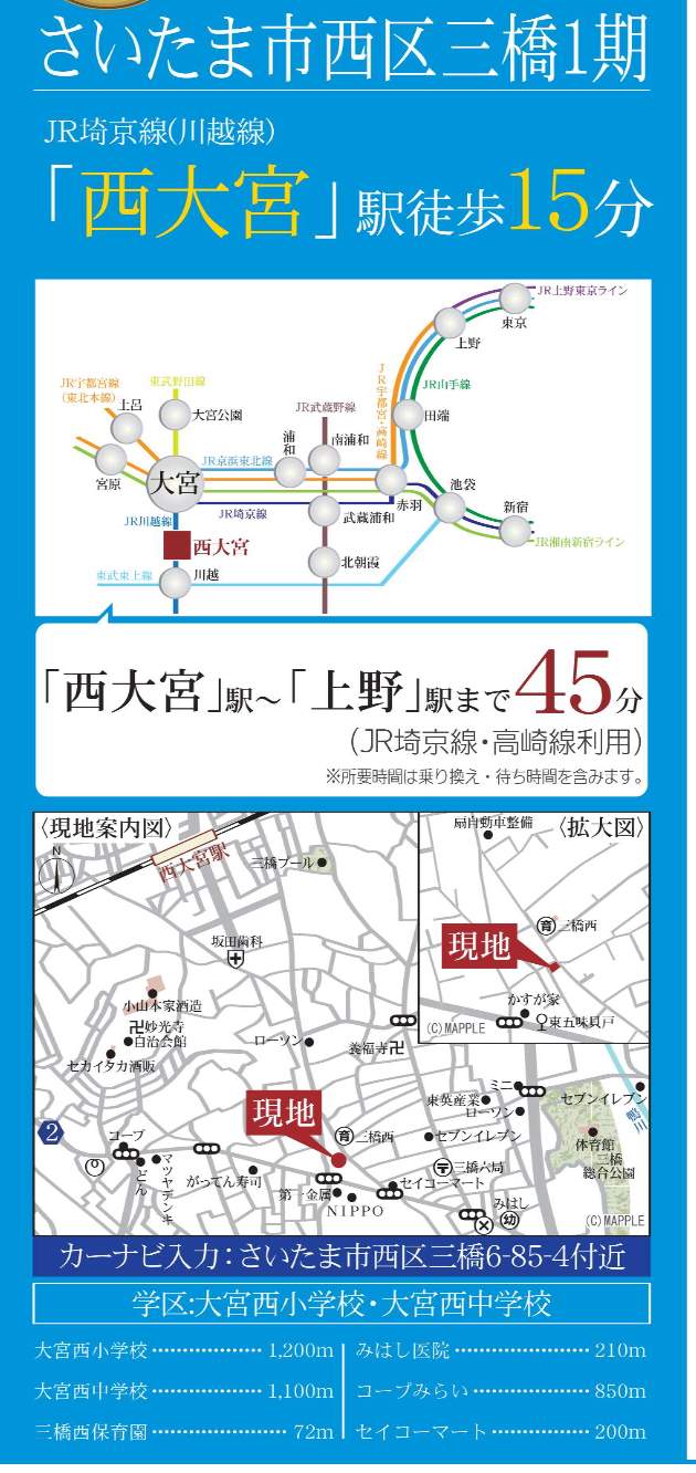 所在地 埼玉県さいたま市西区三橋6丁目 85-4新築戸建 仲介手数料無料 4399万円 更にお祝金最大20万円プレゼント付 西大宮駅歩15分