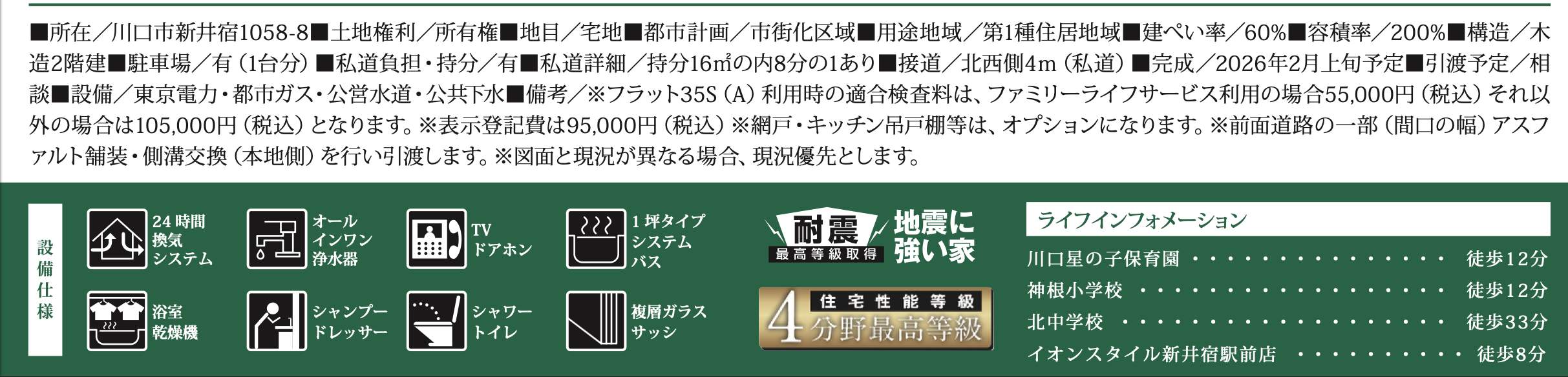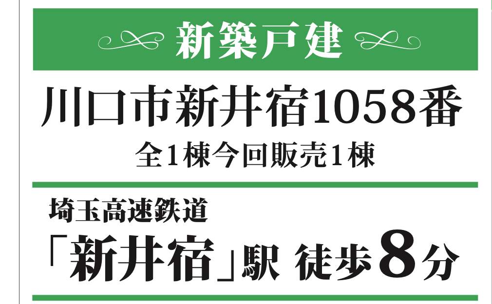 川口市大字新井宿 新築戸建 仲介手数料無料 3590万円 更にお祝金最大20万円プレゼント付 新井宿駅歩8分 新築戸建