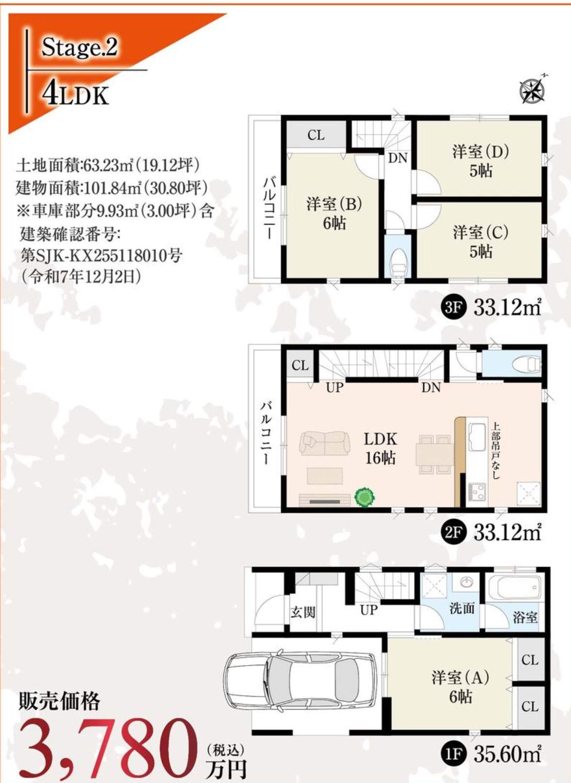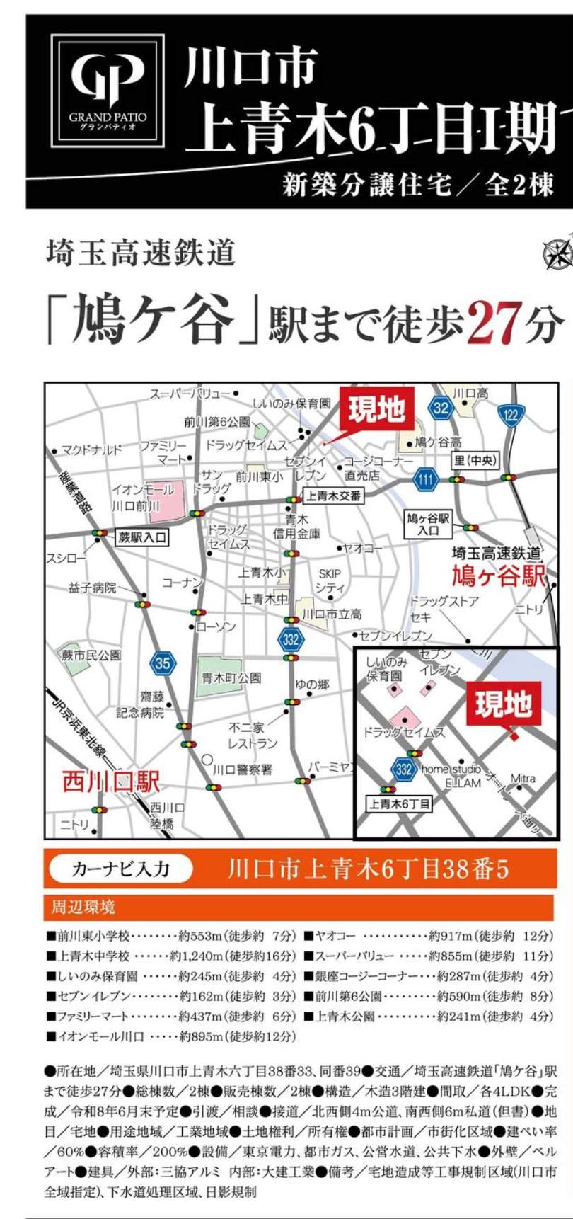 | 所在地 | 埼玉県川口市上青木6丁目38-5 新築戸建 仲介手数料無料 3780万円 更にお祝金最大20万円プレゼント付 鳩ヶ谷駅歩23分 |