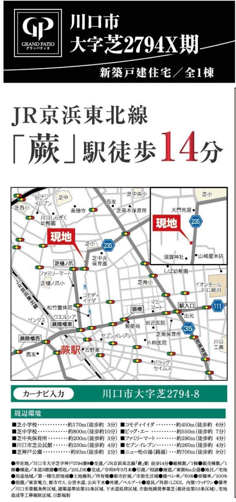 所在地 埼玉県川口市大字芝2794-8 新築戸建 仲介手数料無料 4180万円 更にお祝金最大20万円プレゼント付 蕨駅歩14分
