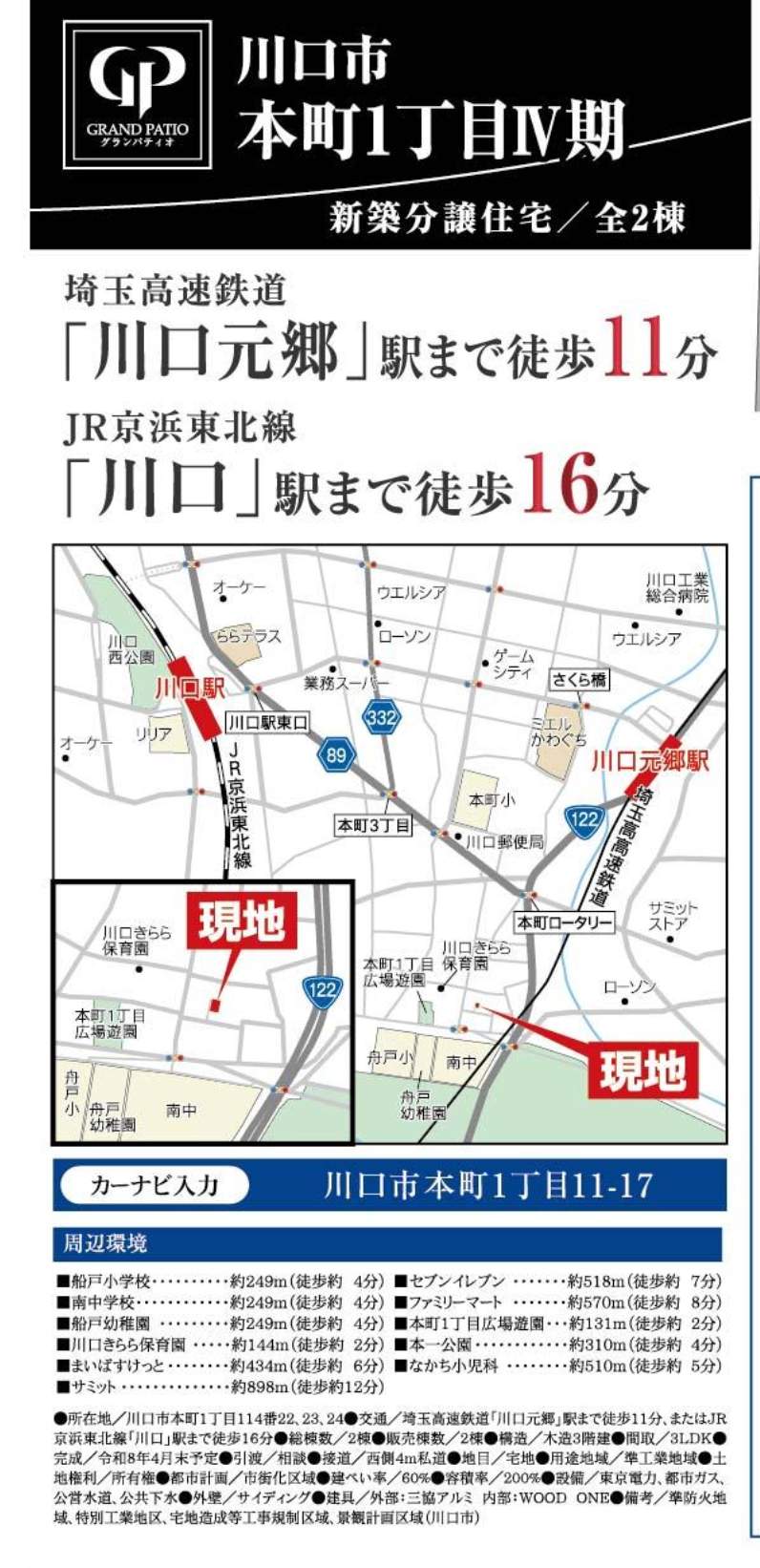 | 所在地 | 埼玉県川口市本町1丁目 11-17新築戸建 仲介手数料無料 5280万円 更にお祝金最大20万円プレゼント付 川口元郷駅歩11分 |