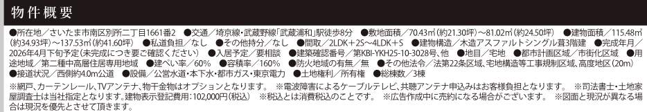 さいたま市南区別所2丁目 新築戸建 仲介手数料無料 8799万円より3棟 希少立地 更にお祝金最大20万円プレゼント付 武蔵浦和駅歩8分 新築戸建