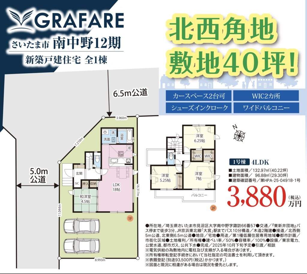 さいたま市見沼区東大宮1丁目 新築戸建 仲介手数料無料 3799万円3999万円 更にお祝金最大20万円プレゼント付 東大宮駅歩17分 新築戸建