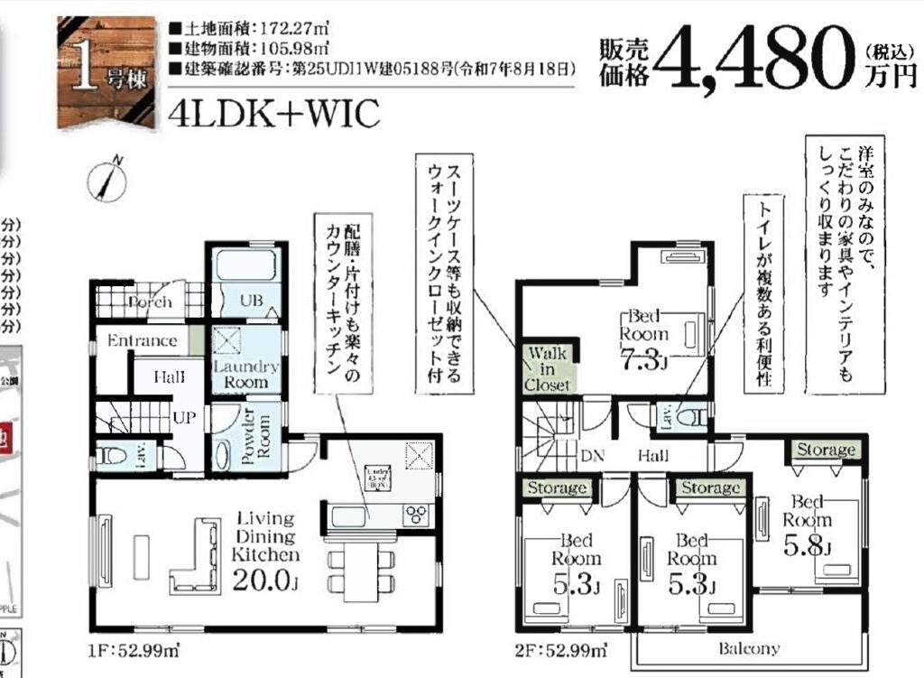 さいたま市北区植竹町1丁目 新築戸建 仲介手数料無料 5580万円5580万円 更にお祝金最大20万円プレゼント付 土呂駅歩12分 新築戸建