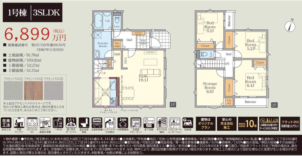 さいたま市北区土呂町1丁目 新築戸建 仲介手数料無料 6998万円 更にお祝金最大20万円プレゼント付 土呂駅歩9分 新築戸建