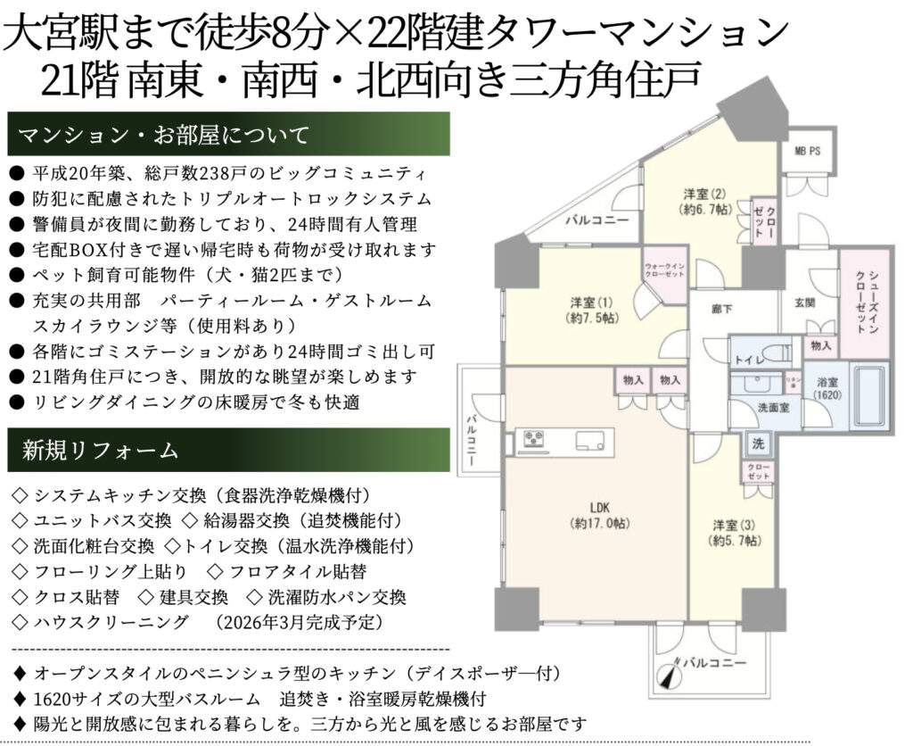 - 埼玉県さいたま市大宮区 下町1丁目21-1 オープンレジデンシア大宮フロント中古マンション 仲介手数料無料 更にお祝金最大20万円プレゼント付 オープンレジデンシア大宮フロント