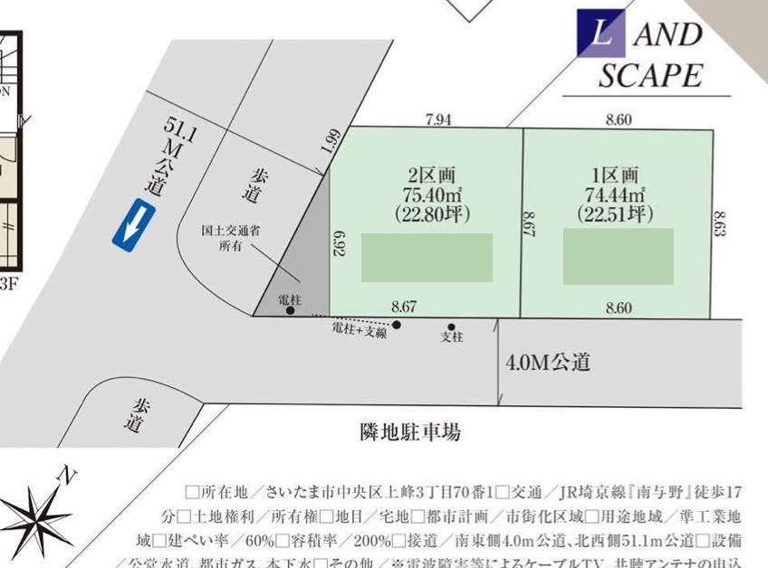 バス(やつしまニュータウン 乗24分 停歩8分) JR京浜東北・根岸線浦和駅 バス(やつしまニュータウン 乗27分 停歩8分) |