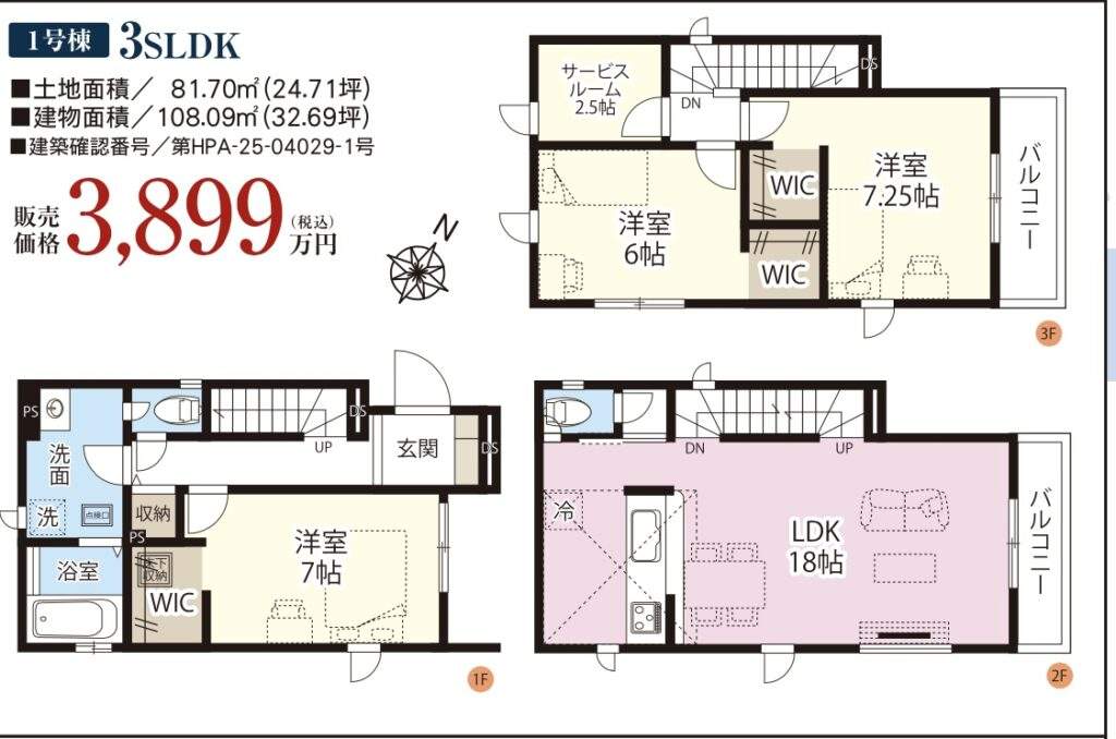 川口市三ツ和3丁目 新築戸建 仲介手数料無料 3398万円 更にお祝金最大20万円プレゼント付 南鳩ヶ谷駅歩15分 新築戸建