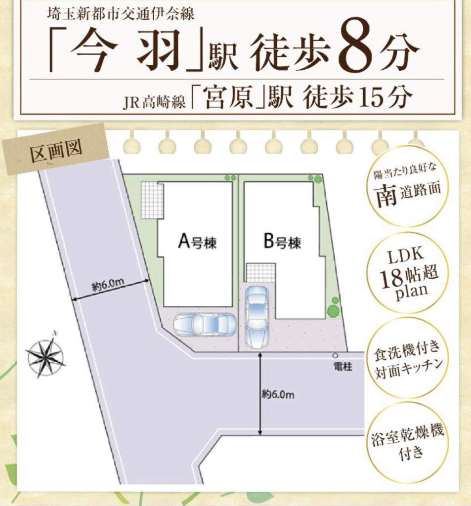 さいたま市北区今羽町 新築戸建 仲介手数料無料 3980万円より8棟 更にお祝金最大20万円プレゼント付 今羽駅歩7分 新築戸建