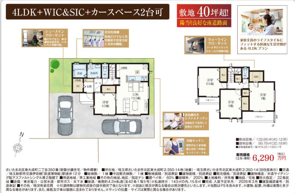 - 埼玉県さいたま市北区 東大成町2丁目350-14 新築戸建 仲介手数料無料 6290万円 更にお祝金最大20万円プレゼント付 鉄道博物館(大成)駅歩12分