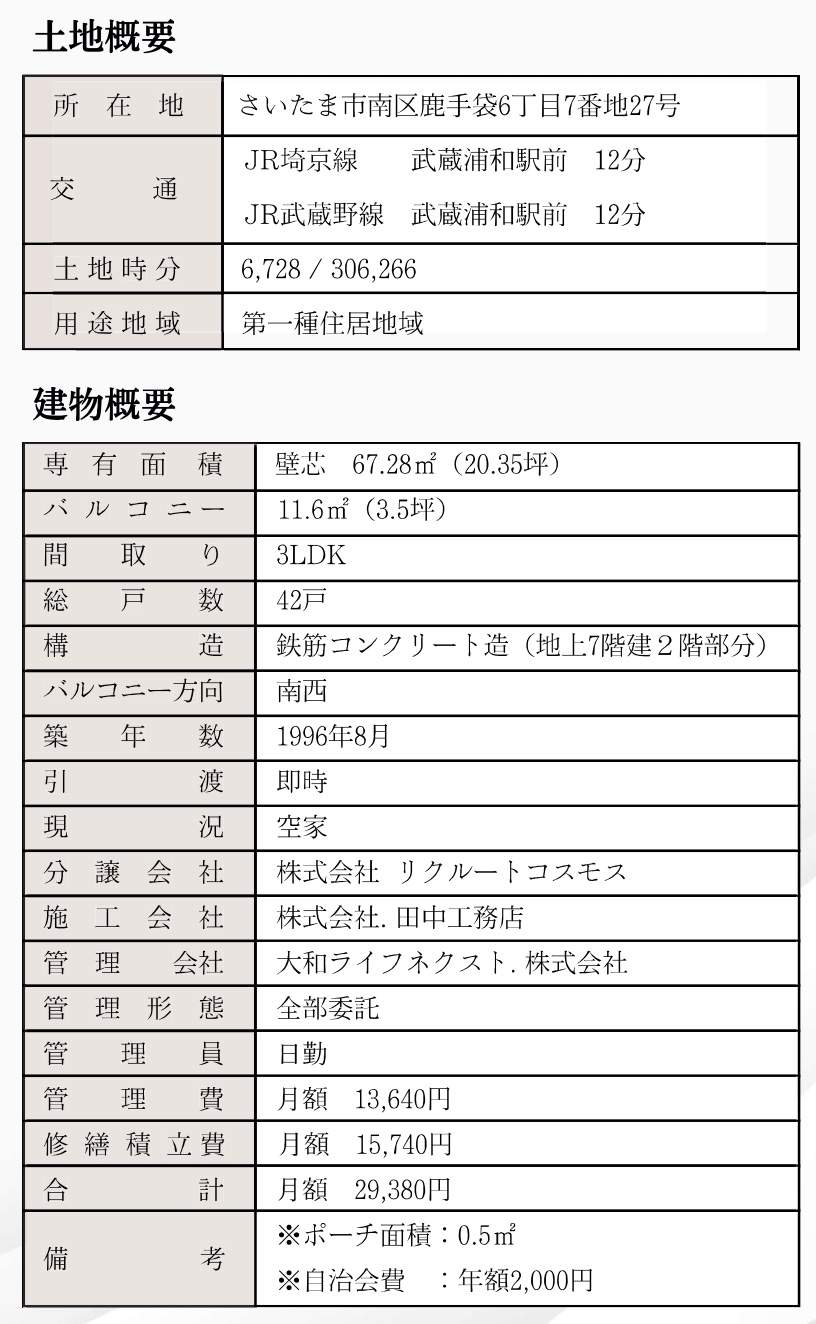 さいたま市中古マンションの詳細資料はお問い合わせください。