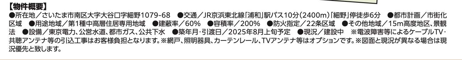 | 交通 | JR京浜東北・根岸線浦和駅 バス(細野 乗10分 停歩6分) |