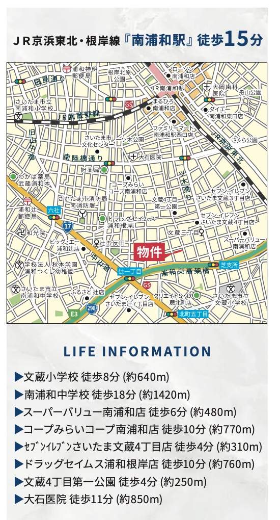 交通 JR京浜東北・根岸線南浦和駅 徒歩15分