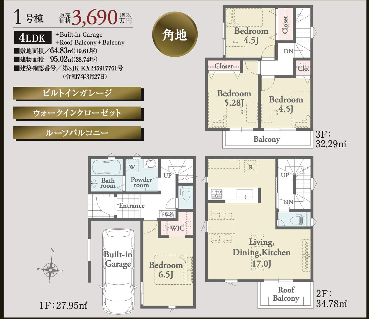 | 所在地 | 埼玉県川口市大字安行慈林1050-3 新築戸建 仲介手数料無料 3690万円 更にお祝金最大20万円プレゼント付 新井宿駅歩17分 |