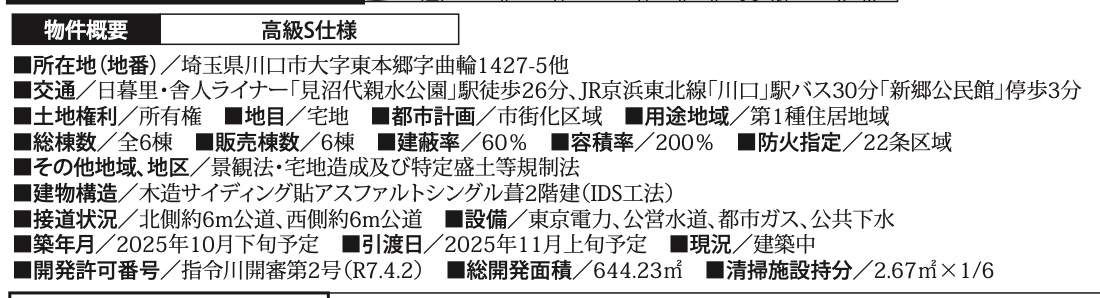 川口市大字東本郷 新築戸建 仲介手数料無料 3690万円より6棟 更にお祝金最大20万円プレゼント付 見沼代親水公園駅歩26分 新築戸建