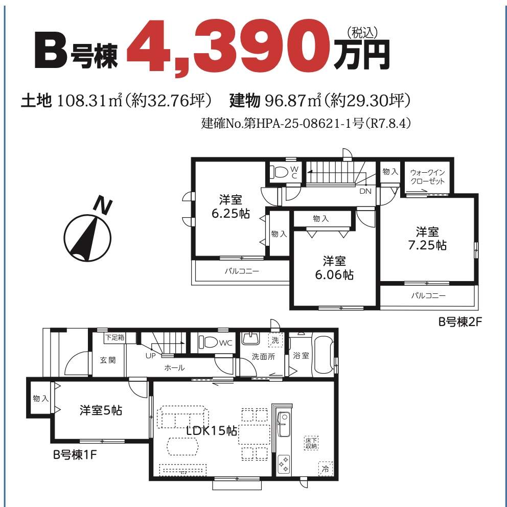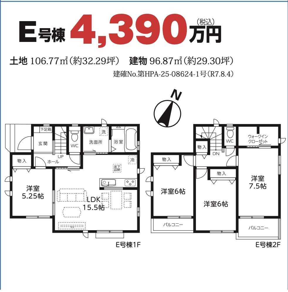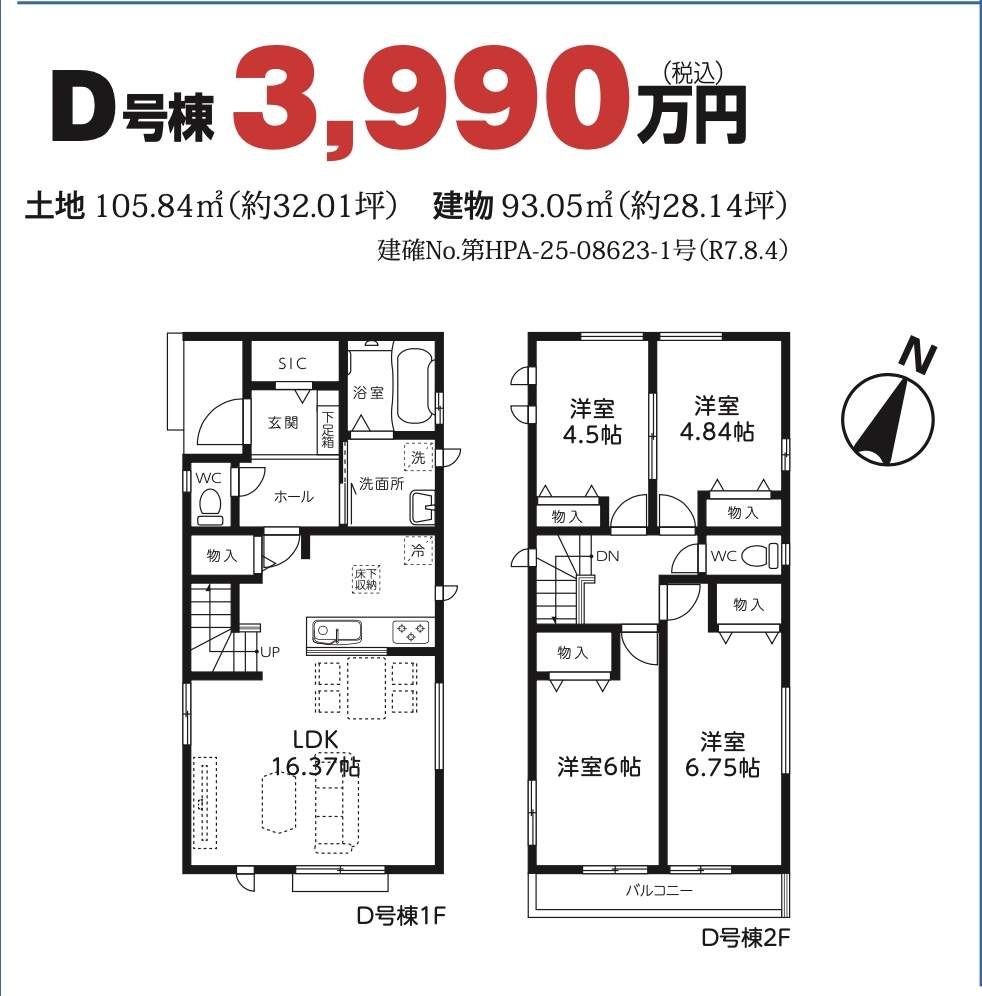 外観、飯田産業 川口市大字東本郷 新築戸建 仲介手数料無料 配置図、飯田産業 川口市大字東本郷 新築戸建 仲介手数料無料 A号棟 価格改定4090万円(税込)2025/11/10共通間取り図、飯田産業 川口市大字東本郷 新築戸建 仲介手数料無料
