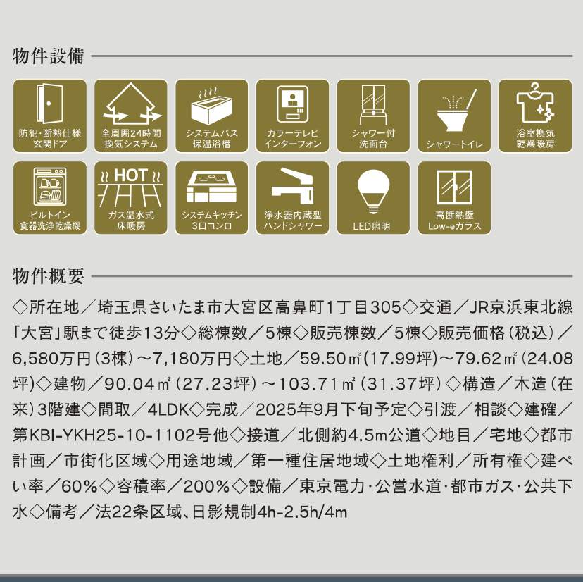 | 所在地 | 埼玉県さいたま市大宮区高鼻町1丁目305 新築戸建 仲介手数料無料 5980万円 更にお祝金最大20万円プレゼント付 大宮駅歩13分 |