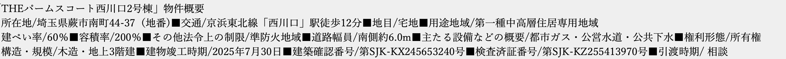 | 交通 | JR京浜東北・根岸線西川口駅 徒歩12分 |