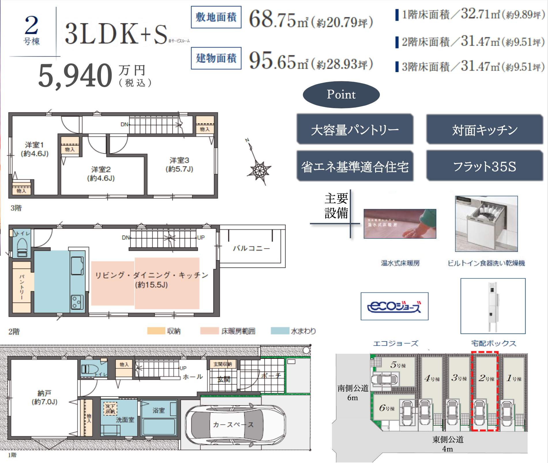 | 所在地 | 埼玉県蕨市南町4丁目44-8 新築戸建 仲介手数料無料 5940万円 更にお祝金最大20万円プレゼント付 西川口駅歩12分 |