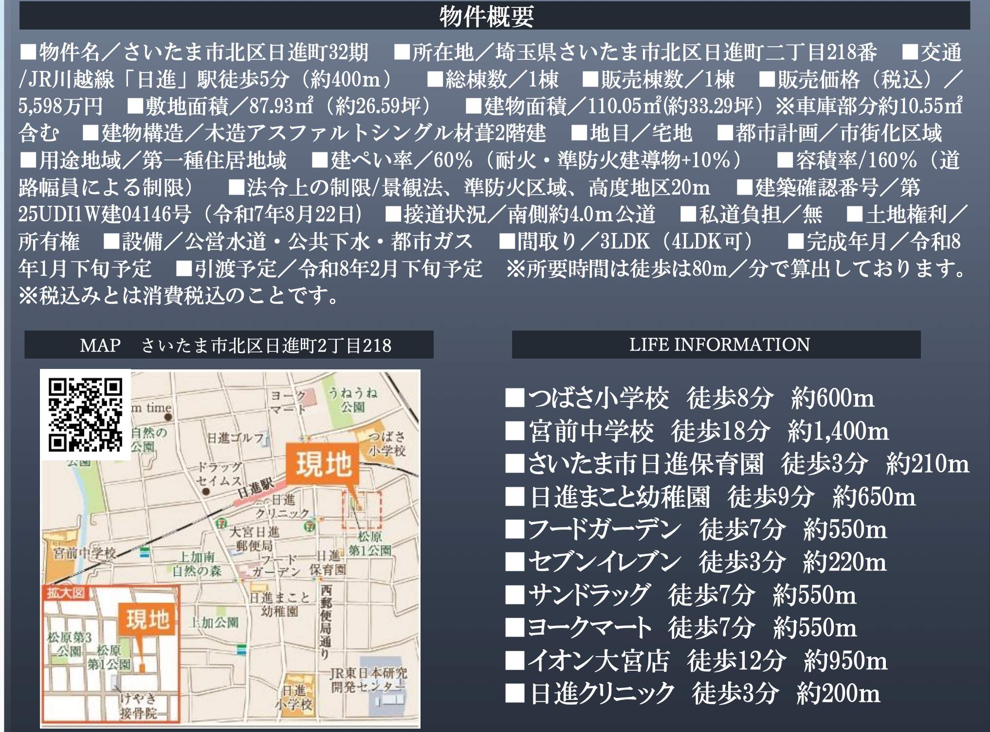 | 所在地 | 埼玉県さいたま市北区日進町2丁目218 新築戸建 仲介手数料無料 5598万円 更にお祝金最大20万円プレゼント付 日進駅歩5分 |