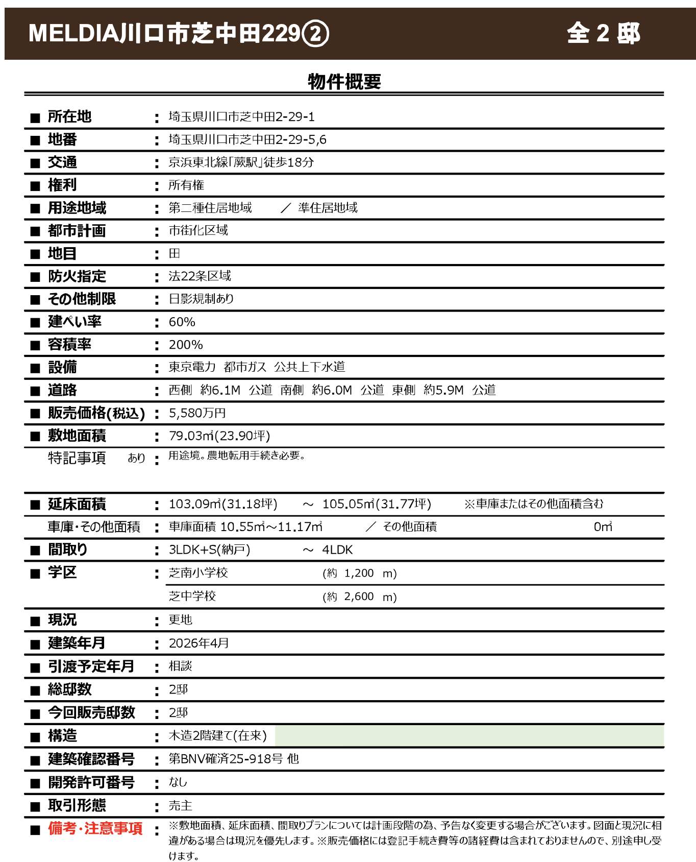 川口市芝中田2丁目 新築戸建 仲介手数料無料 5580万円2棟 更にお祝金最大20万円プレゼント付 蕨駅歩18分 新築戸建