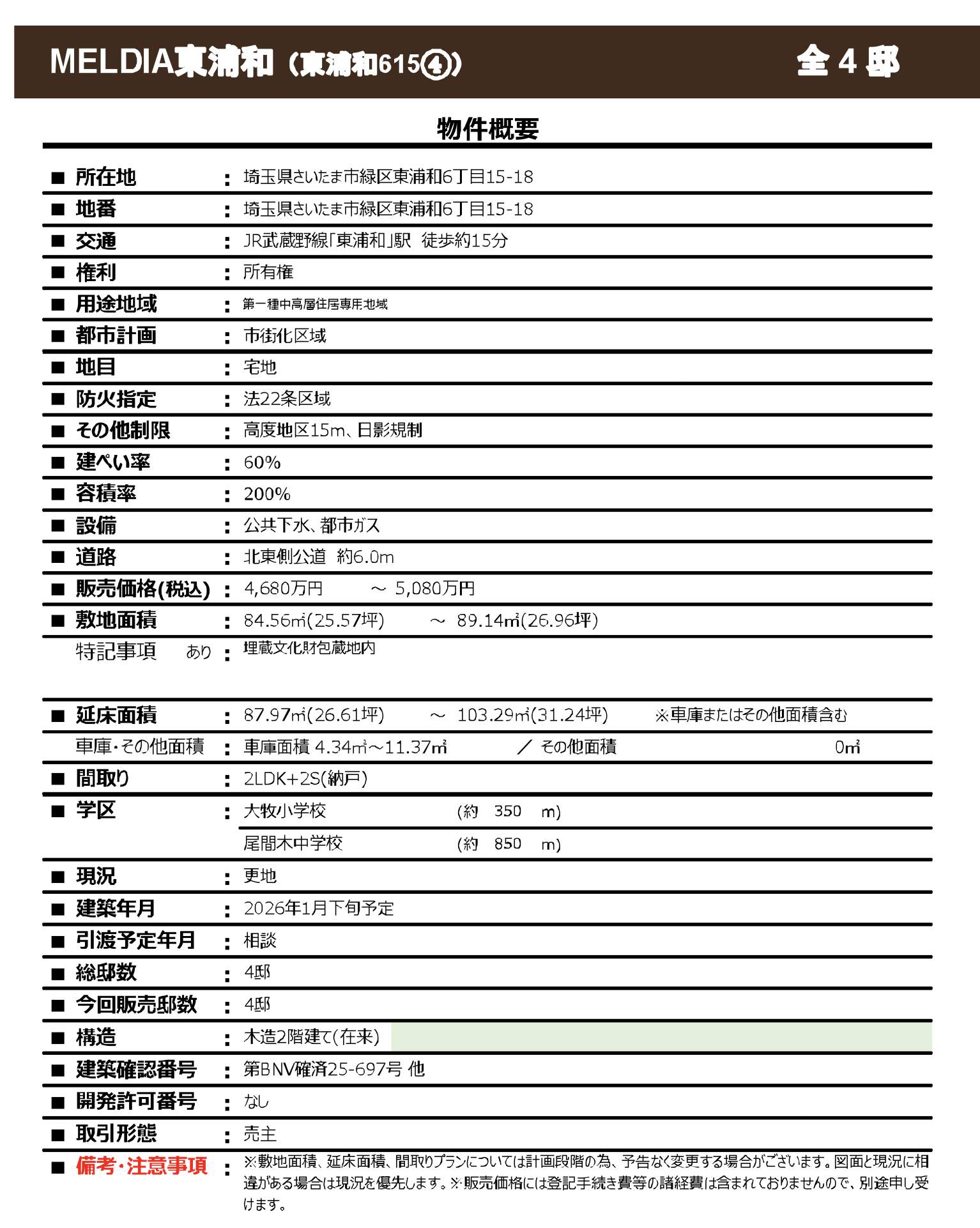 | 所在地 | 埼玉県さいたま市緑区東浦和6丁目15-8 新築戸建 仲介手数料無料 4480万円 更にお祝金最大20万円プレゼント付 東浦和駅歩15分 |